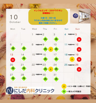 今月よりインフルエンザワクチン、コロナワクチンの接種が開始となっております。